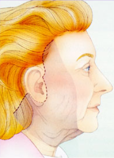 Die Standardschnittlinie beim Facelifting beginnt im behaarten Bereich der