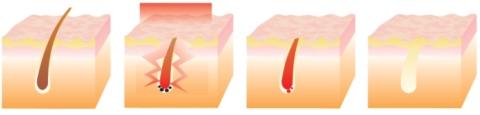 abgestrahlt. Die gesamte Follikelzone erleidet einen Wärmeschaden, was bei einer Temperatur von etwa 60°C zur Nekrose